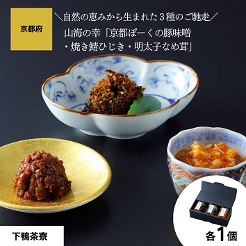 山海の幸「京都ぽーくの豚味噌・焼き鯖ひじき・明太子なめ茸」